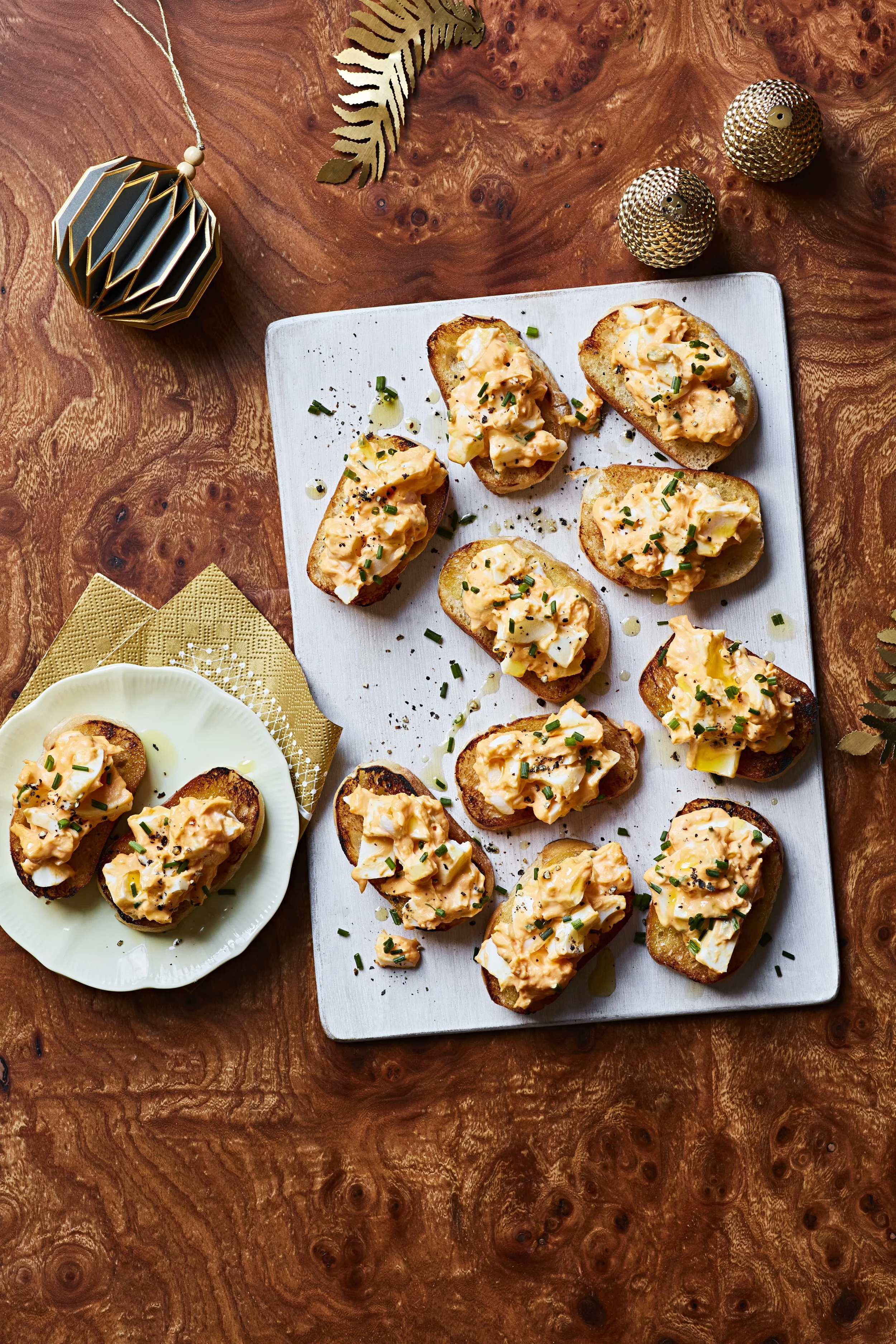 The Telegraph - Saturday Supper Club - Georgie Hayden - Christmas Party Food - Smashed devilled eggs on toast - 01.jpg